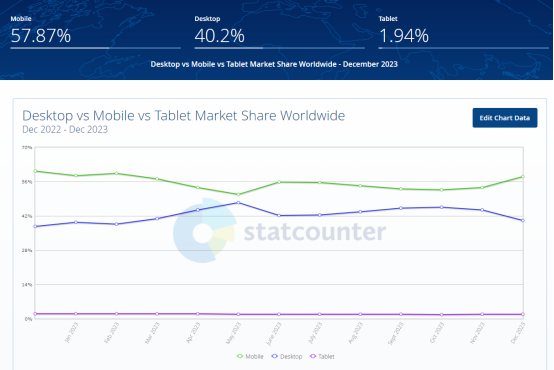 根据statcounter的数据,2022.12-2023.12移动搜索占比达到57.87%。随着移动设备的普及,用户越来越倾向于使用移动设备进行搜索和浏览。Google Discover是移动设备上的特有模块,为用户提供更直观、便捷的发现体验。